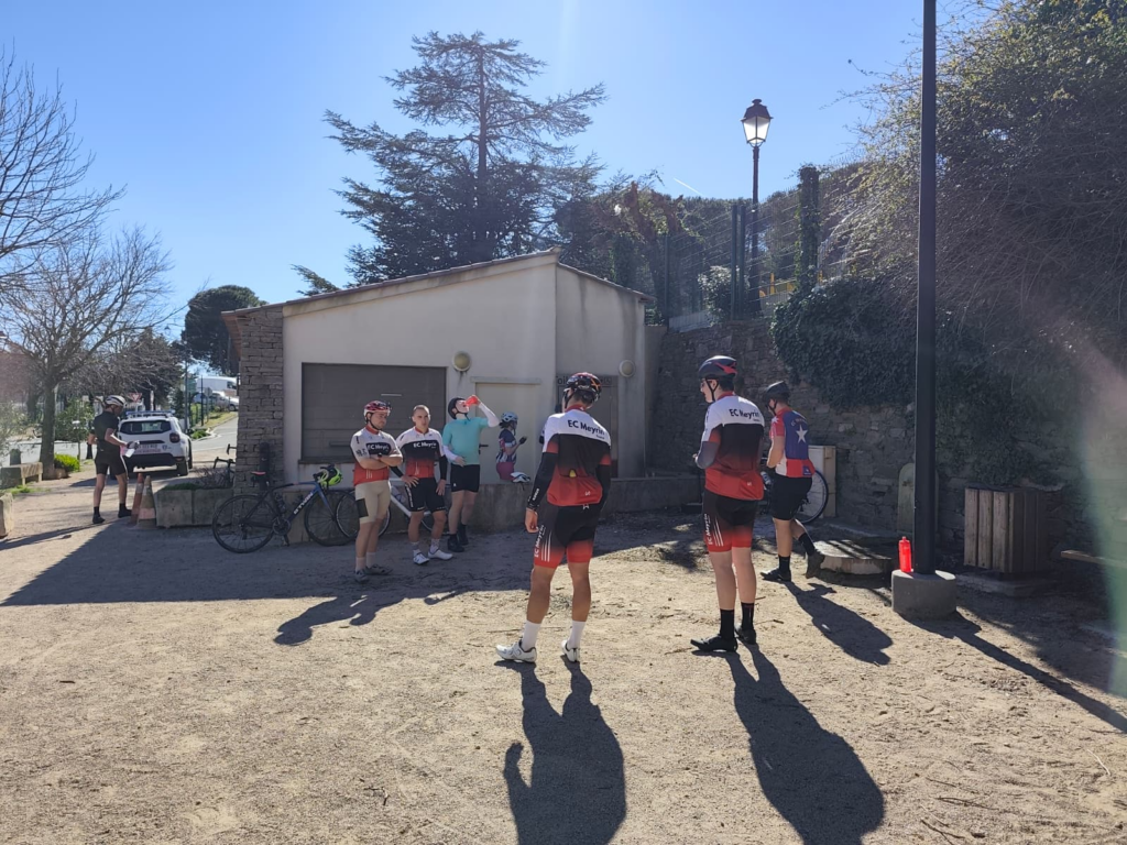 Une fois ces émotions diverses évacuées, nous nous retrouvons en retard sur les vélos à tenter de rattraper les aînés qui ne souhaitaient pas attendre les retardataires. Heureusement, la cadence imprimée par Marie nous permet de les rejoindre dans le Pas du Cerf. Ce sera à son sommet que nous nous dirons au-revoir pour la journée. Les expérimentés se dirigent vers Rocbaron et Besse alors que les pitchounets partent vers Collobrières pour enchaîner plusieurs cols (Fourches, Garde-Freinet, et les bosses du bord de mer). Ce fut l’occasion pour Flavio de nous montrer sa maîtrise incroyable de sa monture pour ne pas s’échouer dans un caniveau : il réussit à sauver sa trajectoire et son vélo en se jetant dans le bas-côté de la route.