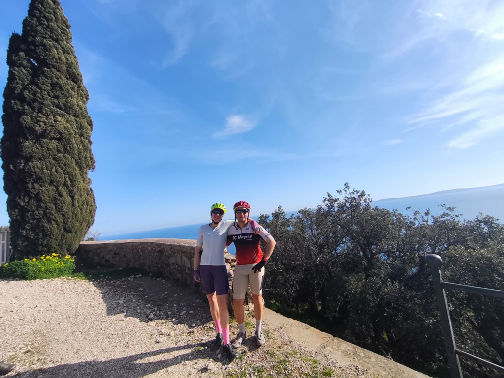 Rassasié.e.s, c’est dans le bruit assourdissant de la roue libre d’Alejandro que le groupe repartit vers Cogolin. S’ensuivit un mur qui nous mena en bord de mer, dès la Croix-Valmer. Pour les pitchounes sous stéroïdes, le rythme était trop lent. Nous dûmes, le coeur lourd, accepter notre différence de niveau et les laisser voler vers leur réussite sportive. On est nuls quoi…